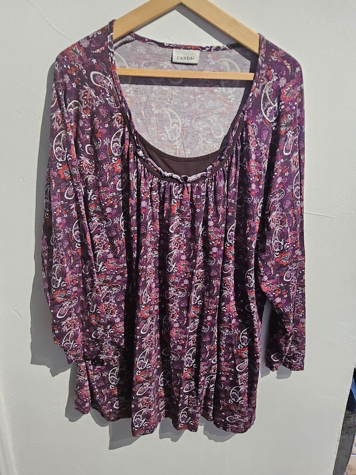 🟣 Haut Canda – Taille 6XL – Motifs cachemire Joli haut ample de la marque Canda, coloris violet avec motifs cachemire. Coupe confortable, manches longues, col légèrement arrondi. Tissu fluide, agréable à porter. ⭐ Taille : 6XL ⭐ État : Très bon état