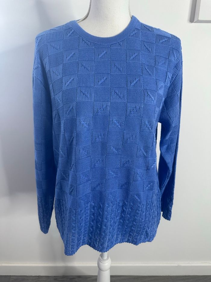 Pull en maille bleu damier torsades Vintage T42 XL - photo numéro 1