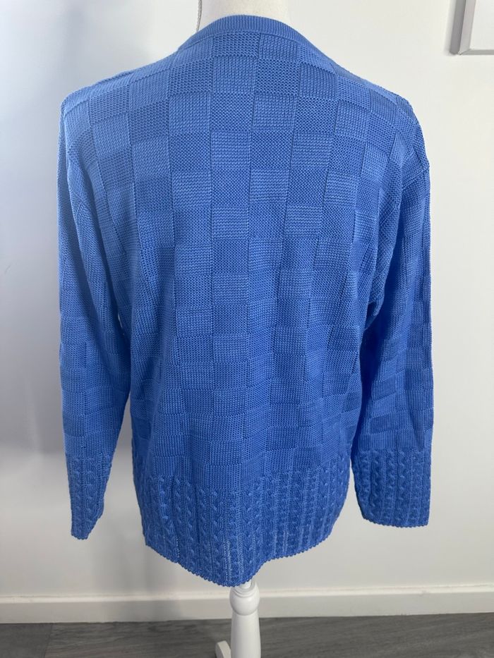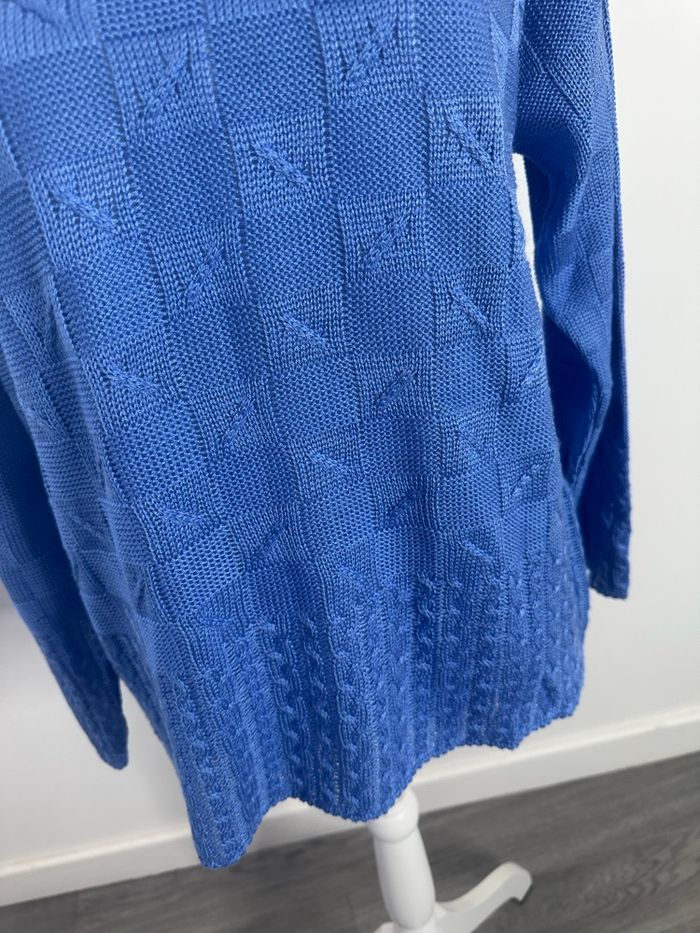 Pull en maille bleu damier torsades Vintage T42 XL - photo numéro 4