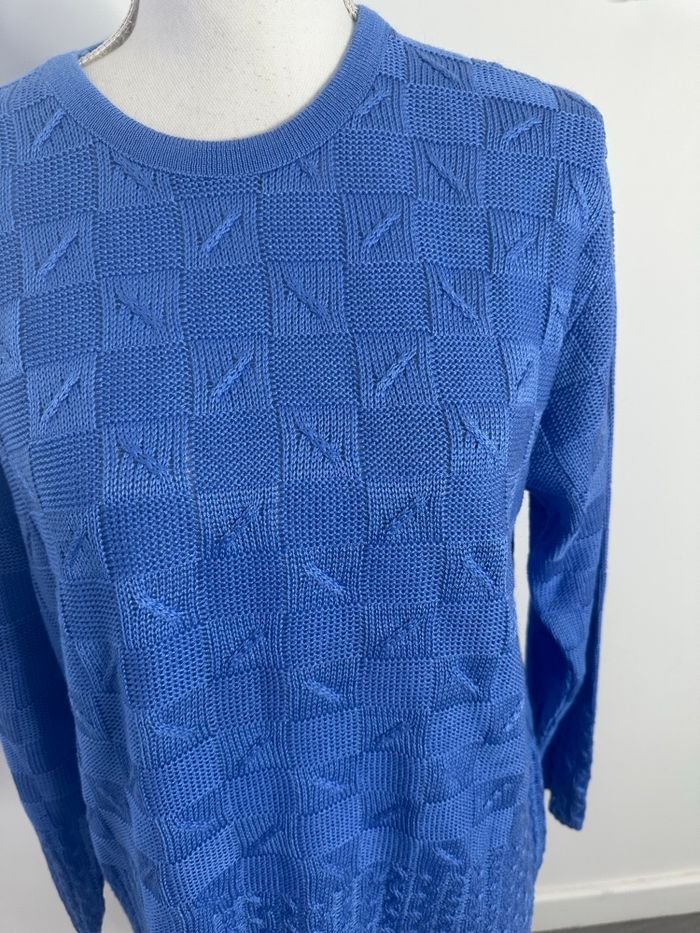 Pull en maille bleu damier torsades Vintage T42 XL - photo numéro 2