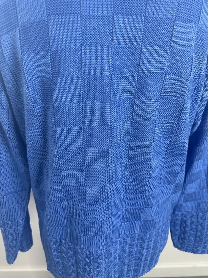 Pull en maille bleu damier torsades Vintage T42 XL - photo numéro 6