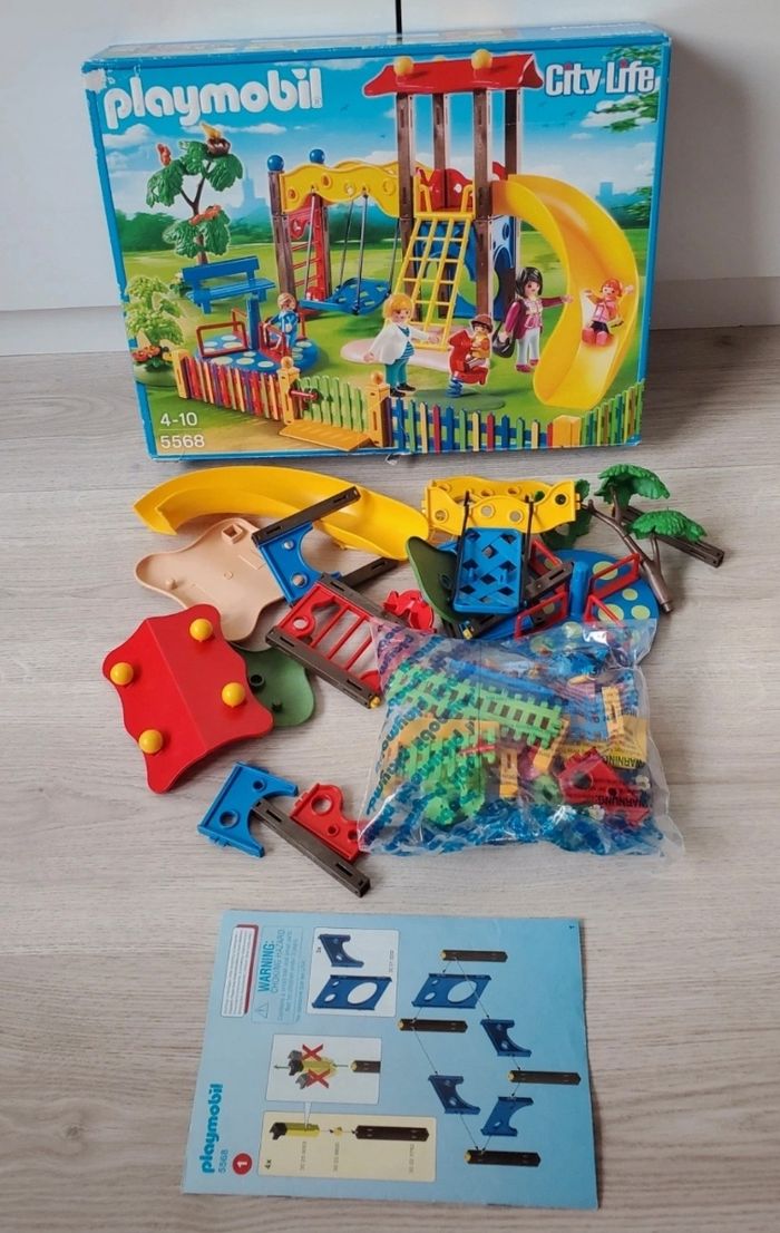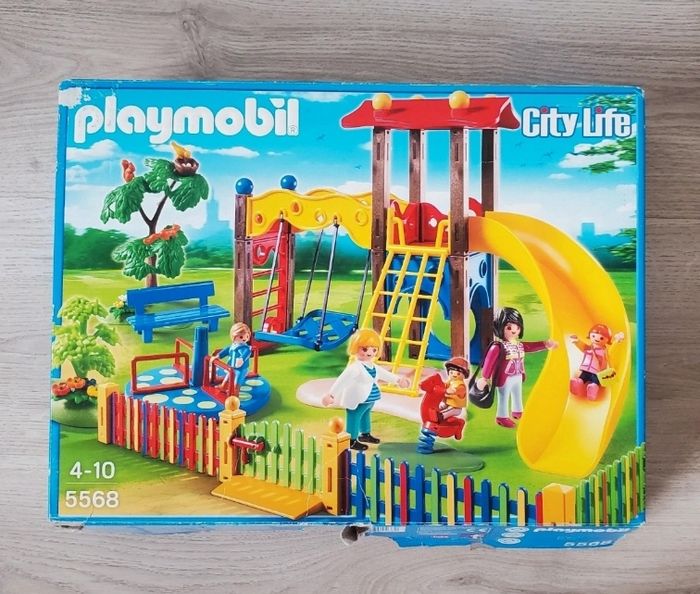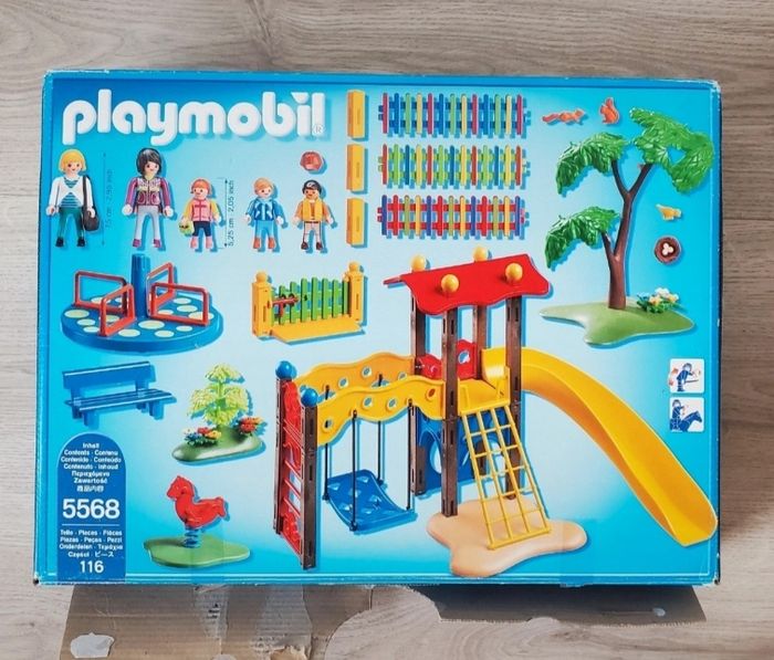 Square pour enfants avec jeux, Réf 5568. ▪︎ Il manque le sac à main de la fillette. ▪︎ La femme enceinte à été remplacée par un autre femme enceinte. ▪︎ Un petit garçon à été remplacé par un autre (la casquette est bien présente) Boîte d'origine (abîmée à l'ouverture) et notice.