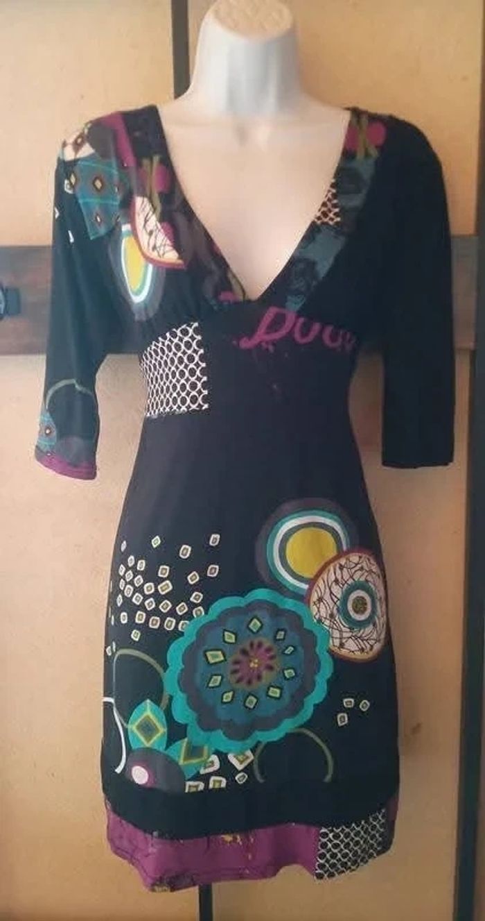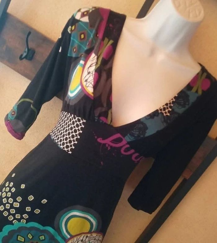 Magnifique Robe façon Desigual Taille : M Marque : inconnu Prix : 10€ Pièce unique aux motifs colorés et originaux, typiques de la marque Desigual Parfaite pour égayer votre dressing ! 🤩 ⚠️ Ce n'est pas une Marque DESIGUAL 🛍️ Un coup de cœur à s'offrir vite ! Disponible immédiatement Envoie rapide et soigné 🩷Remise activé de -30% dès 3 articles achetés 🩷
