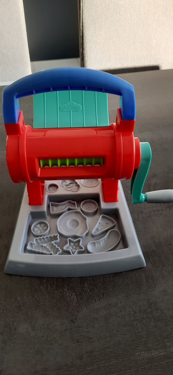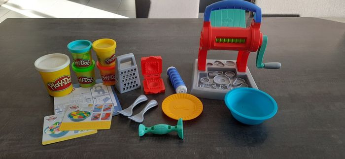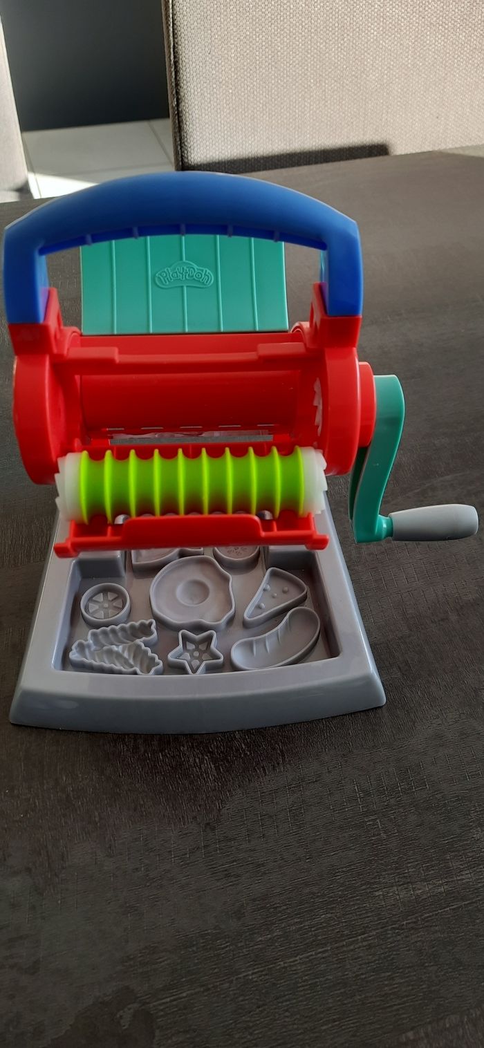 La fabrique à pâtes Play-Doh contonent une machine à pâtes avec deux rouleaux pour créer 2 sortes de pâtes différentes. Avec 7 accessoires, 2 cartes et 5 pots de pâte à modeler.