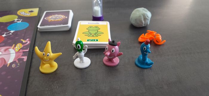 Accessoires inclus : 300 cartes, 4 pions, pâte à modeler, sablier, plateau de jeu et les règles du jeu en français.