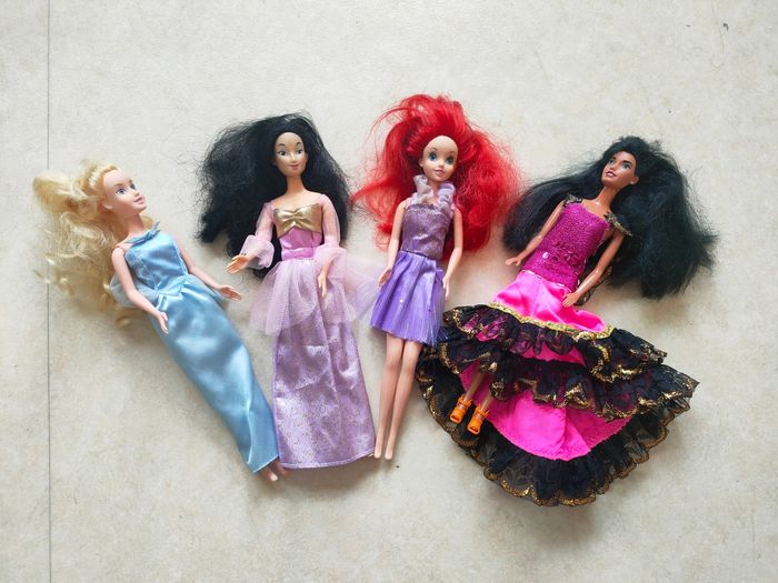Lot composé de 4 poupées princesses (type Barbie) accompagnées de 5 accessoires / vêtements. Les poupées sont habillées et prêtes à jouer : idéal pour compléter une collection ou offrir. Contenu du lot : – 4 poupées princesses – 5 accessoires / vêtements assortis – Bon état, propres et complètes selon photos Parfait pour les enfants qui aiment les univers de princesses et les jeux imaginaires. #didinedorajouets #princesses #poupées #barbies #disney