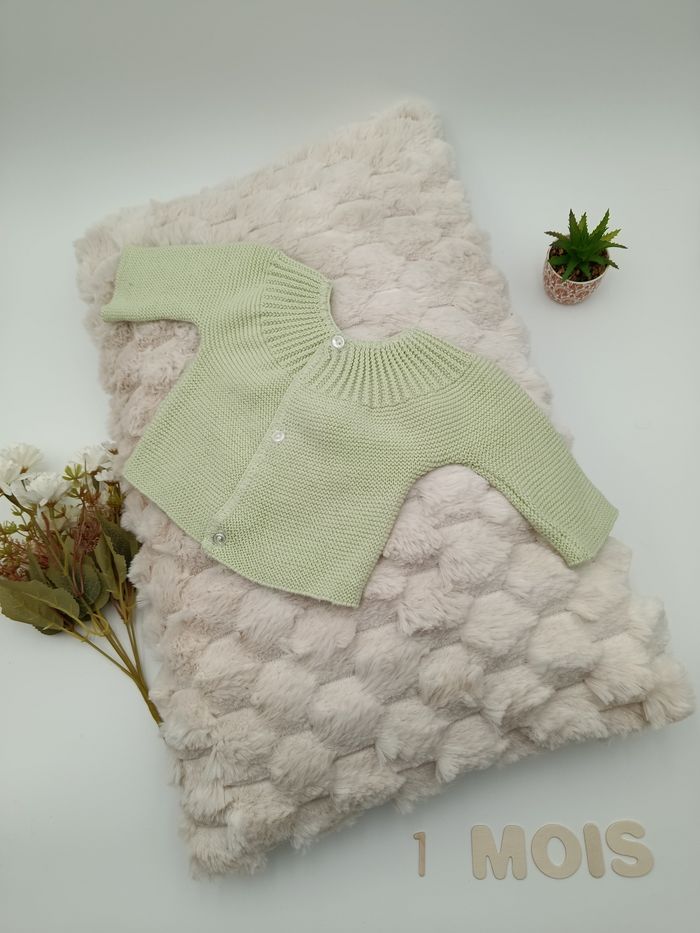 - En mailles - Fermeture devant avec boutons - Couleur verte - Aucune tâche ni trou