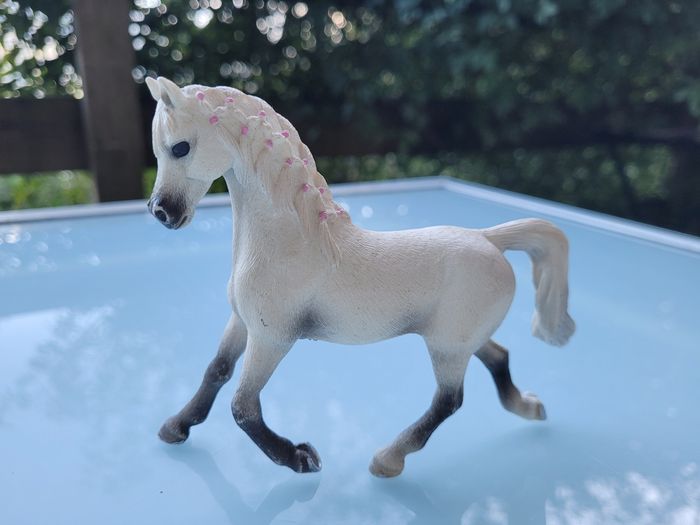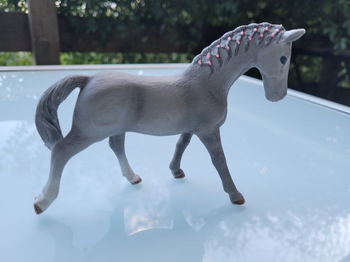 CHEVAUX SCHLEICH - 1 CHEVAL GRIS CRINIÈRE TRESSÉE NOEUDS ROSES - 1 CHEVAL BEIGE/CRÈME CRINIÈRE TRESSÉE - 1 CHEVAL PLUS PETIT (TAILLE ENTRE LE POULAIN ET LE CHEVAL) BLANC À PATTES NOIRES ET NOEUDS ROSES DANS LA CRINIÈRE TRÈS BON ÉTAT JE VENDS UNE TRENTAINE DE SCHLEICH : #schleichmooglou ⚠️ JE NE SÉPARE PAS LE LOT ⚠️