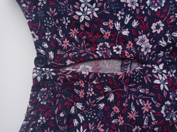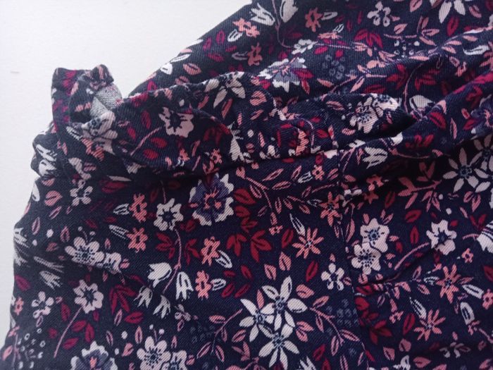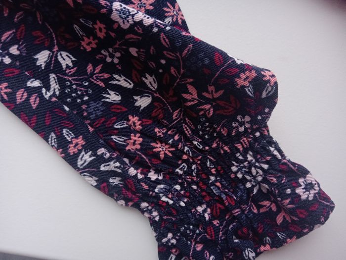 Chemise à manches longues fleurie 2 ans, bouton au dos pour mieux enfiler la chemise, petits volants en haut des manches, neuve, tons prune, violet à motifs fleurie
