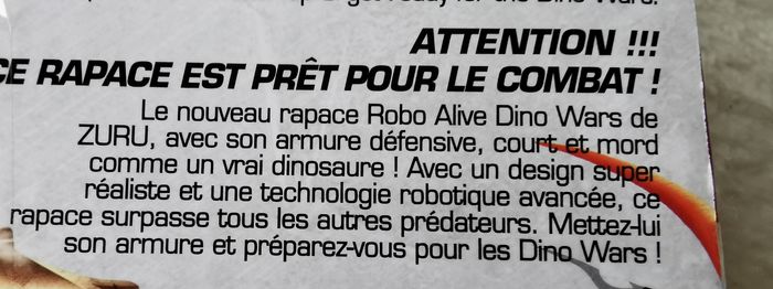 Robo alive, Dino wars raptor, lumières, rugissement, court, mord, NEUF