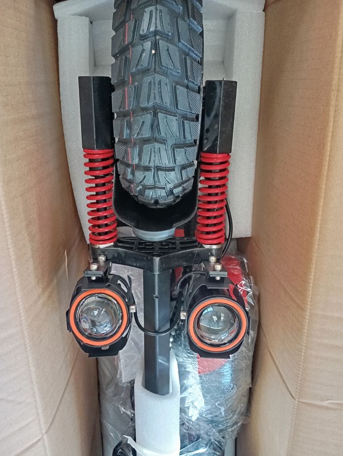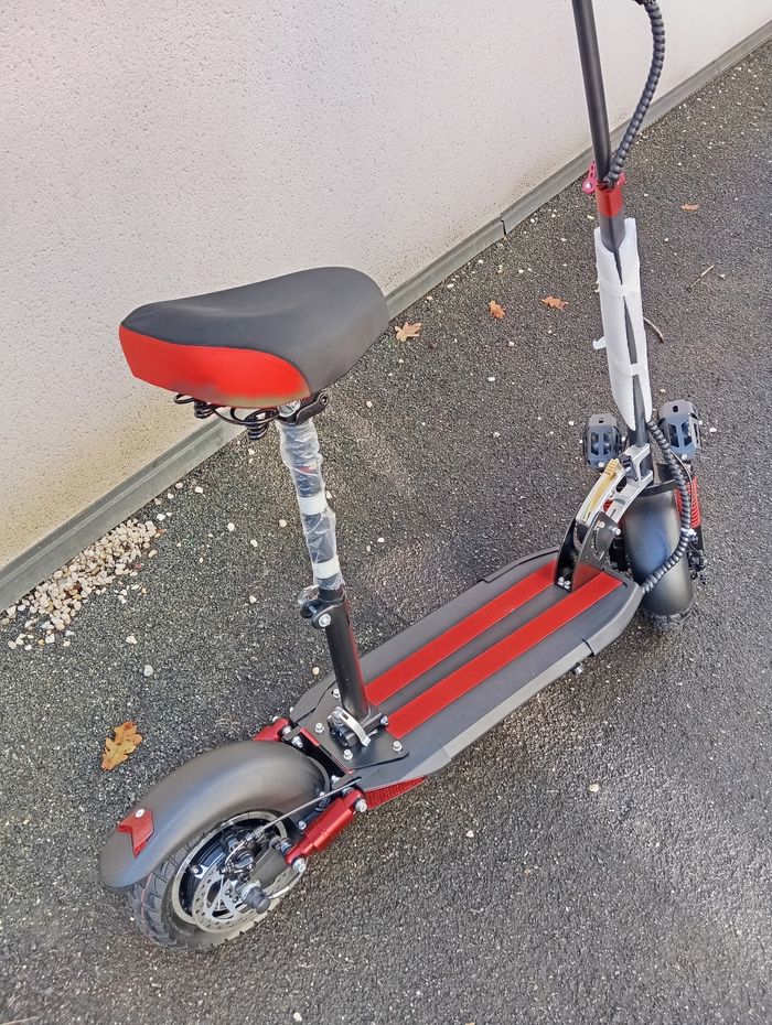 Trottinette électrique 800W, très performante. Batterie 48V 15Ah offrant jusqu’à 50 km d’autonomie et une vitesse pouvant atteindre 50 km/h. Pneus tout-terrain 10 pouces, frein à disque et excellente stabilité de conduite. Dotée d’un éclairage LED et de clignotants pour une meilleure sécurité. Produit neuf, kilomètre 0, valeur d’origine. Assemblée et testée puis reconditionnée dans son carton : fonctionnement impeccable. Emballage intact, envoi rapide et soigné