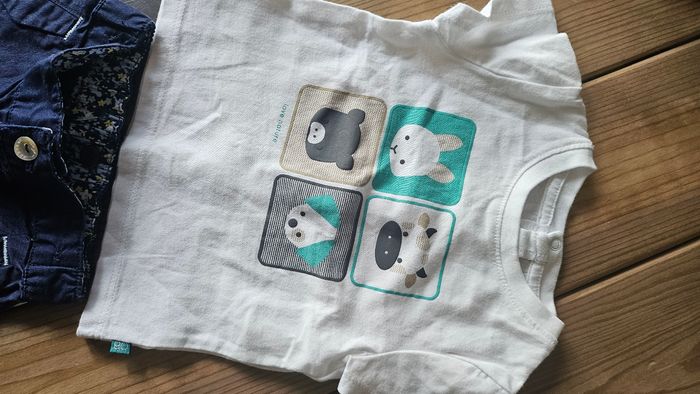 1 tee shirt 1 pantalon en toile 3 mois Très bon état