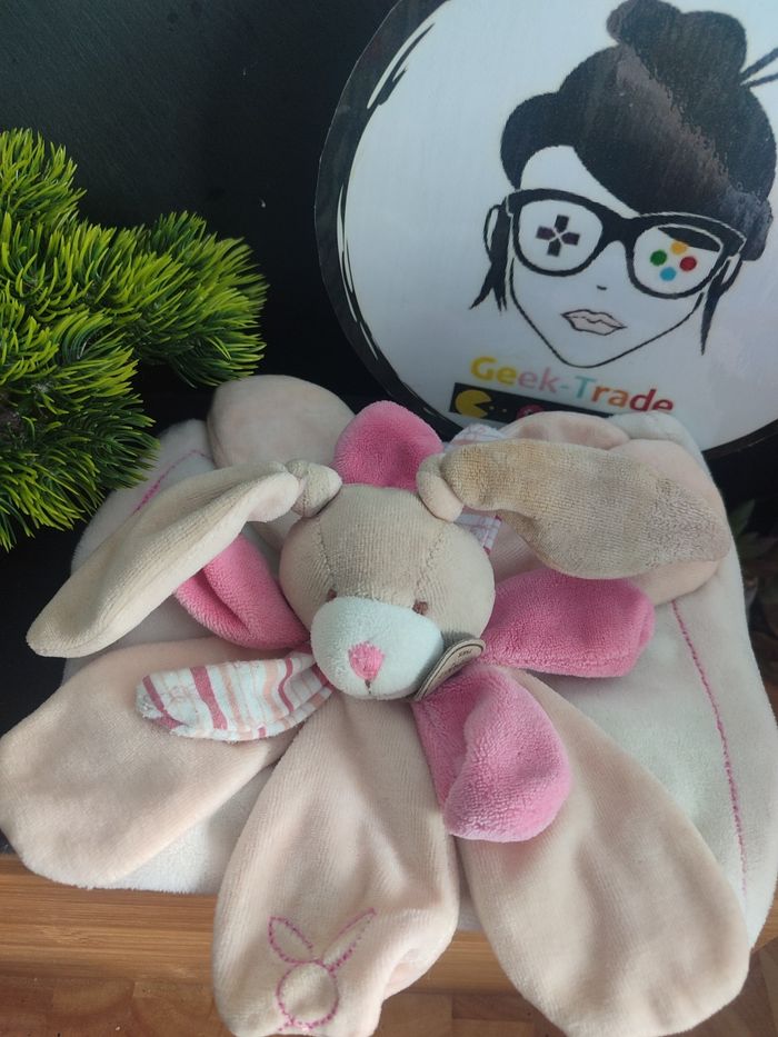 Doudou Et Compagnie Petal Lapin Rose Célestine  plat mouchoir #geektradedoudou