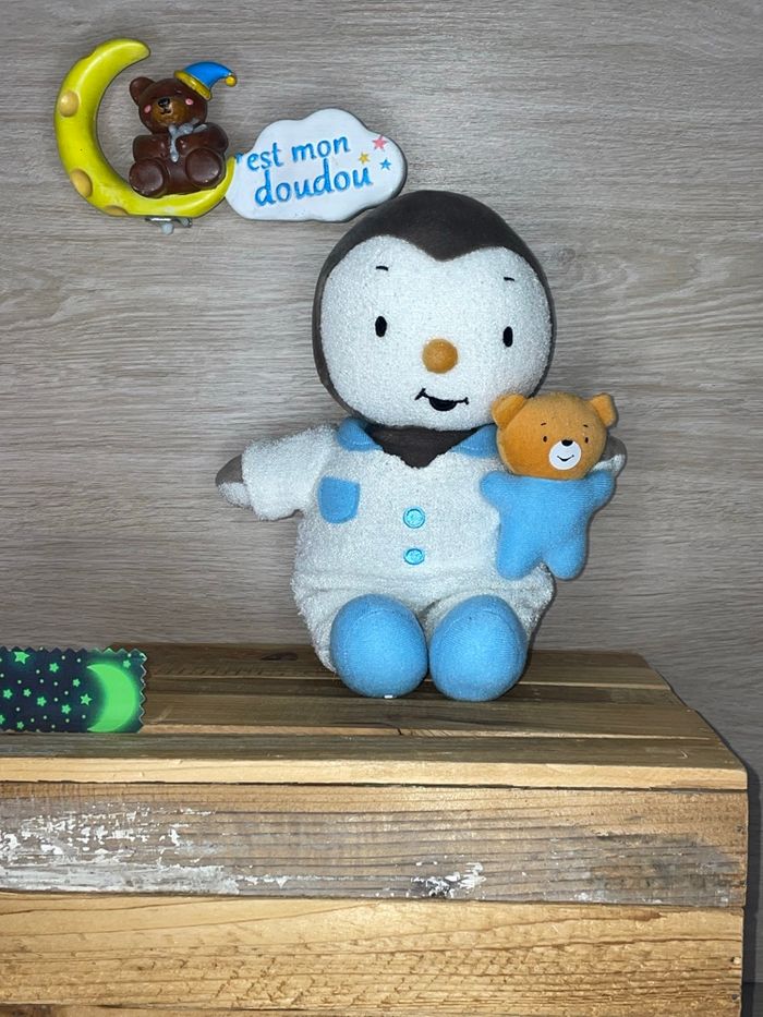 🌺 Bonjour, vendeuse professionnelle 🌺 Je vous propose le Doudou suivant : Marque : t’choupi Genre : pingouin Format : peluche Mesures : 25cm Motifs/Broderies ou plus : en pyjama avec son doudou, luminescent État d’occasion : très bon Stock : 1 RÉFÉRENCE : TCH46 ➡️ Pour plus de modèles de cette marque, cliquez ici : #tchoupi_cestmondoudou ⭐️ La décoration (boîte...) n'est pas vendu avec le doudou ⭐️