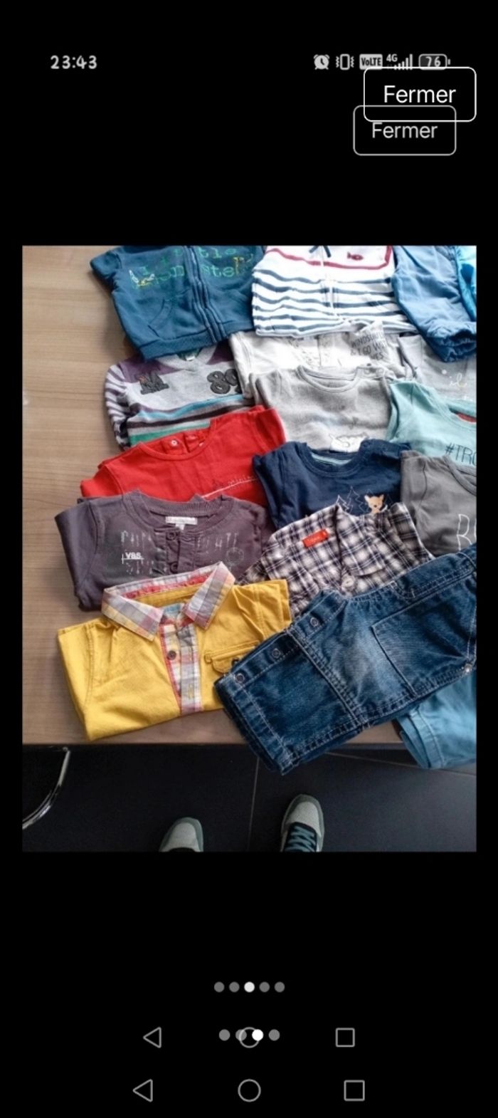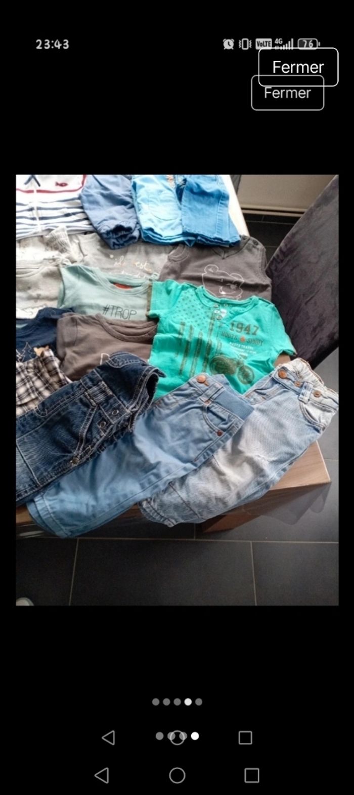 Vends lot vêtement 6 mois en très bon état. 3 jeans 1 salopette 2 pantalons jogging 2 gilets 1 tee shirt 1 pull sans manche 11 tee shirt manches longues Prix 15 euros le lot