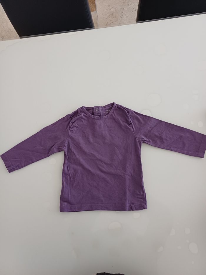 Tres joli tee short avec des manches longues. En tres bon etat de couleur mauve. Il a trois pressions dans le dos au niveau du coup. Voir laphoto ci jointe.