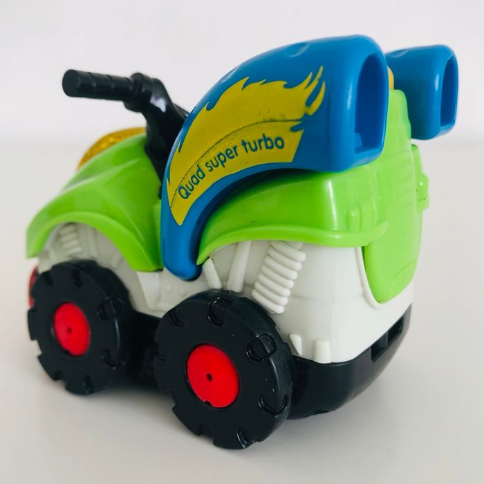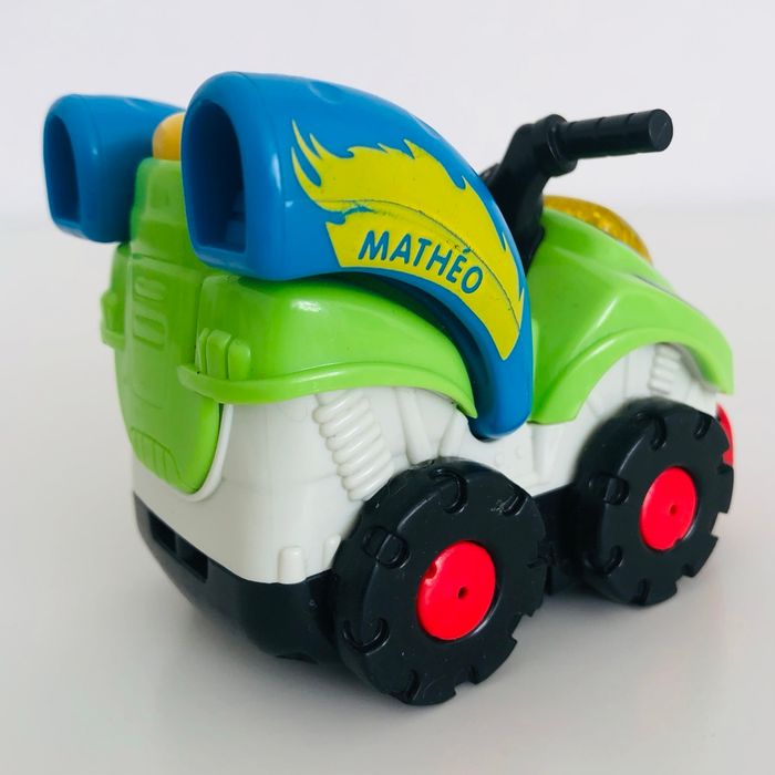 Je vends un véhicule interactif tutut bolide « Mathéo Quad super turbo », en très bon état excepté peinture un peu effacée sur le pare choc avant (voir dernière photo). Musique, sons et lumière. Piles non fournies.