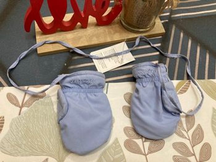 📦 moufles avec ficelle à passer dans les manches du manteau 🎨 bleu Avec scratch et bouton pression Taille 12/18 mois MAXIMO 🚨remise sur lot activée ✨envoi rapide et soigné