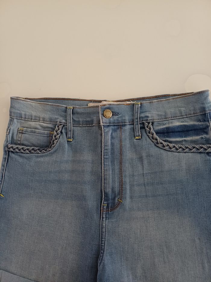 Tres joli short en jeans' Neuf taille 40 et la marque DENIM CO. Il a un motif tresser au niveau des poches. Voir la photo ci jointe. Il a cinq poches .