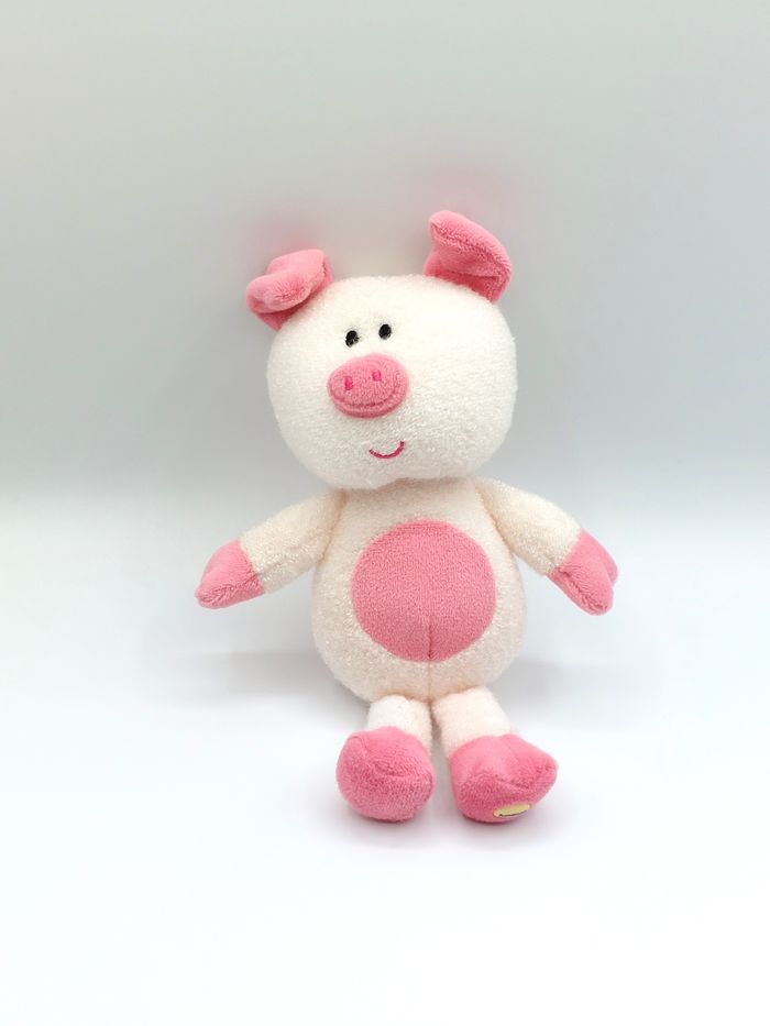 Peluche doudou cochon rose blanc LUMINOU phosphorescent 21 cm yeux noirs très bon état Envoi rapide A11948 #luminou #peluche #cochon #doudou #bébé