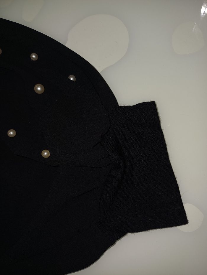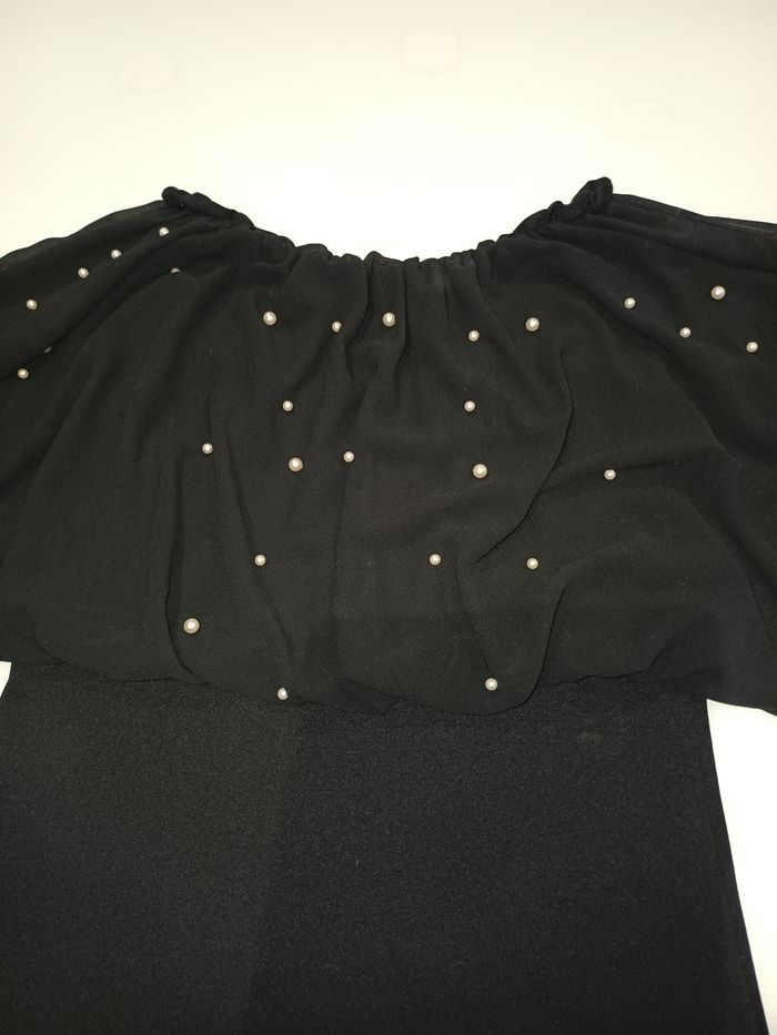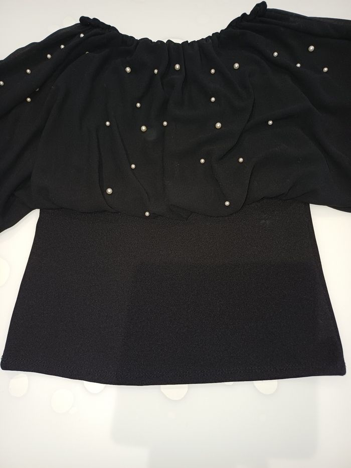 Tres joli haut a manche longue en tres bon etat. De couleur noir et blanc. Il y a des perles cousu a certains endroit voir la photo ci jointe. Un haut pour une soiree ou pour les fetes de fin d annee. Se haut fait tres habille. La taille est 40.