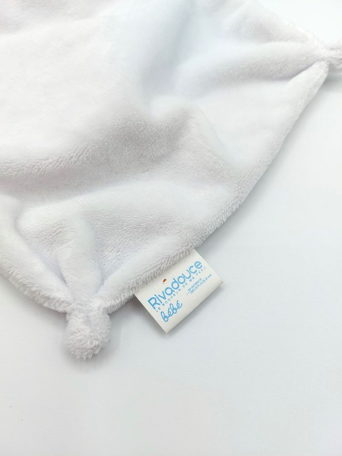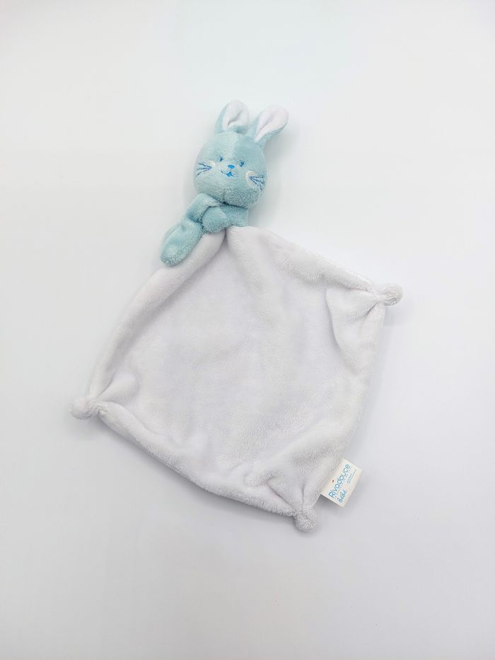 Doudou peluche lapin bleu RIVADOUCE bébé mouchoir blanc