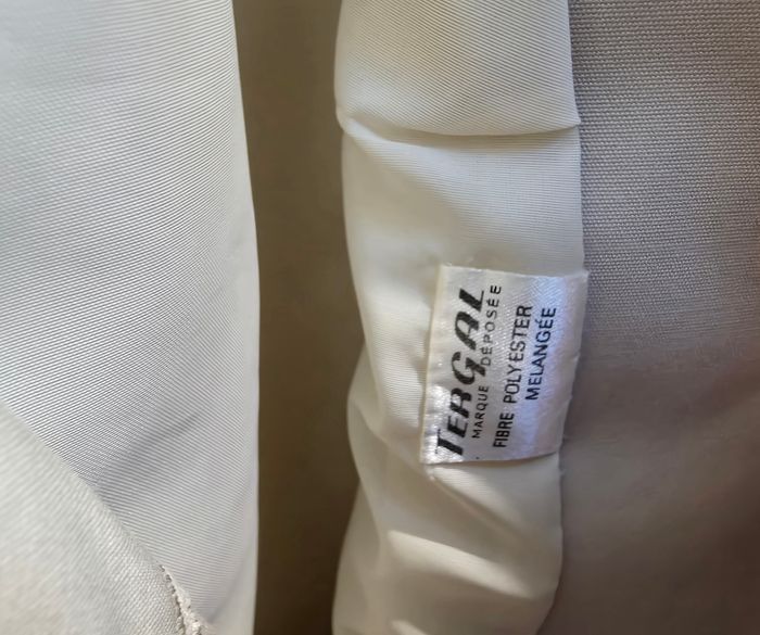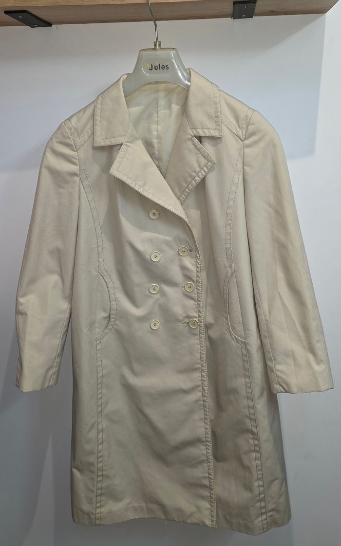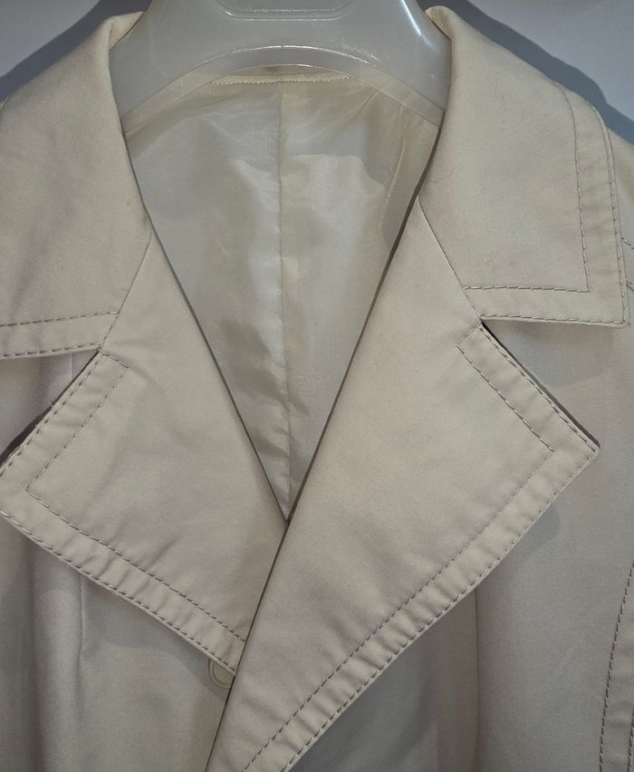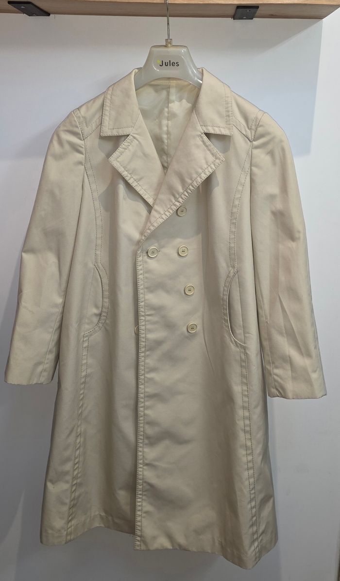 Trench vintage, couleur crème. Marque Tergal, big chief paris. Pas de taille indiquer, correspond a un taille L. Minuscule acro derrière, se voit a peine ( voir photo).