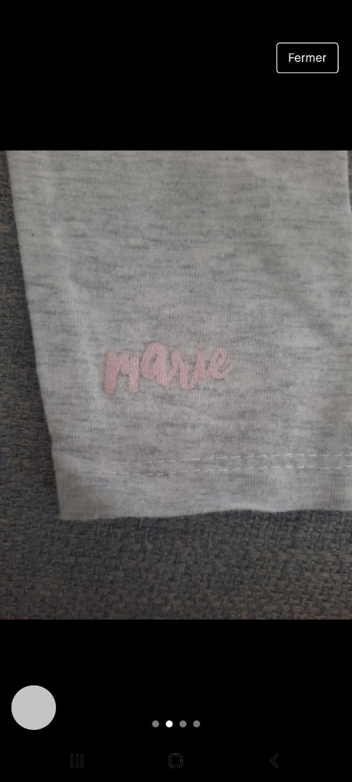 Legging gris imprimé du nom "marie" des aristochats Une légère tâches sur un genoux (voir photos) Taille élastique Taille 9 mois