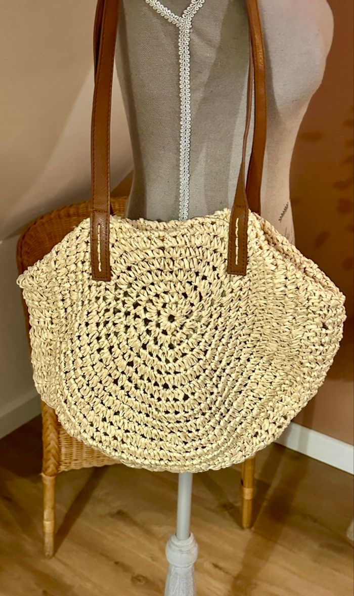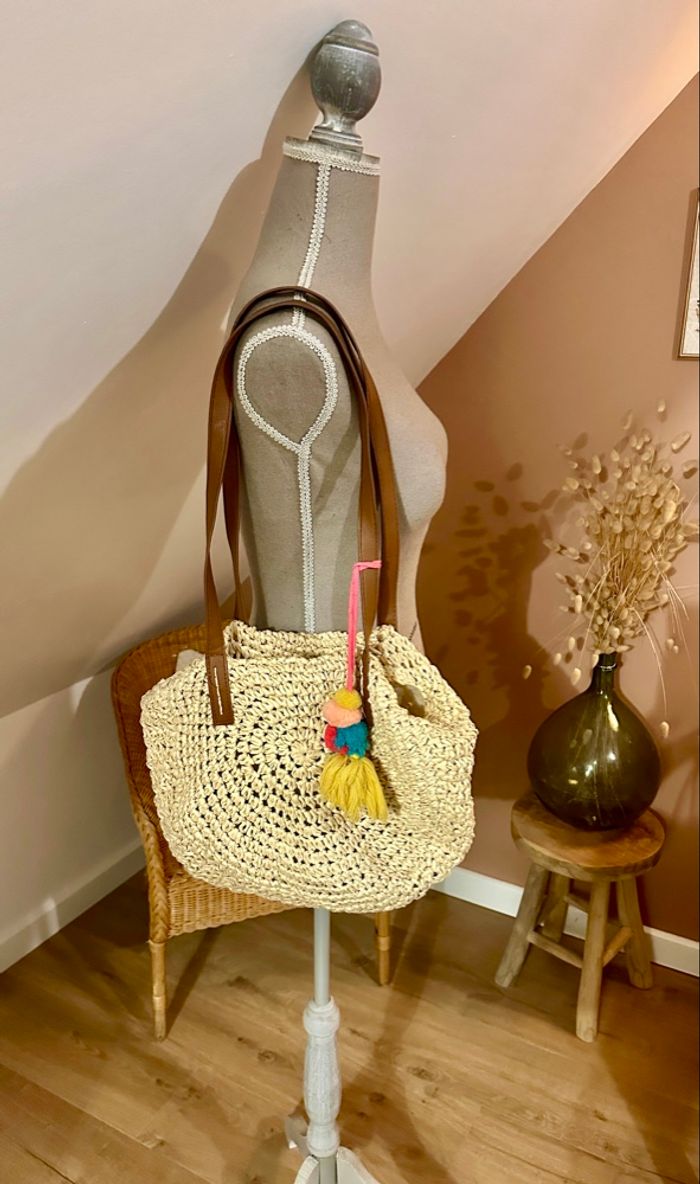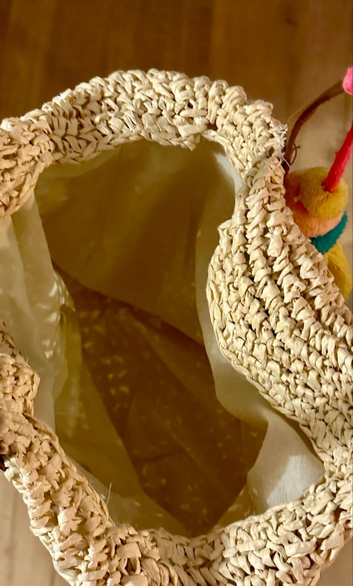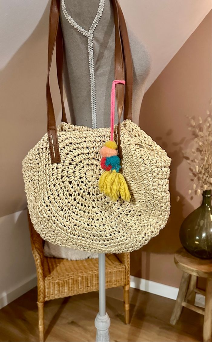 💜 Sac rond bandoulière en rafia avec pompons Gémo neuf 💜 - photo numéro 9