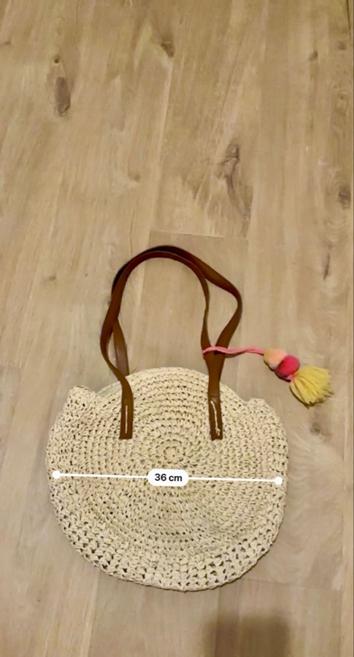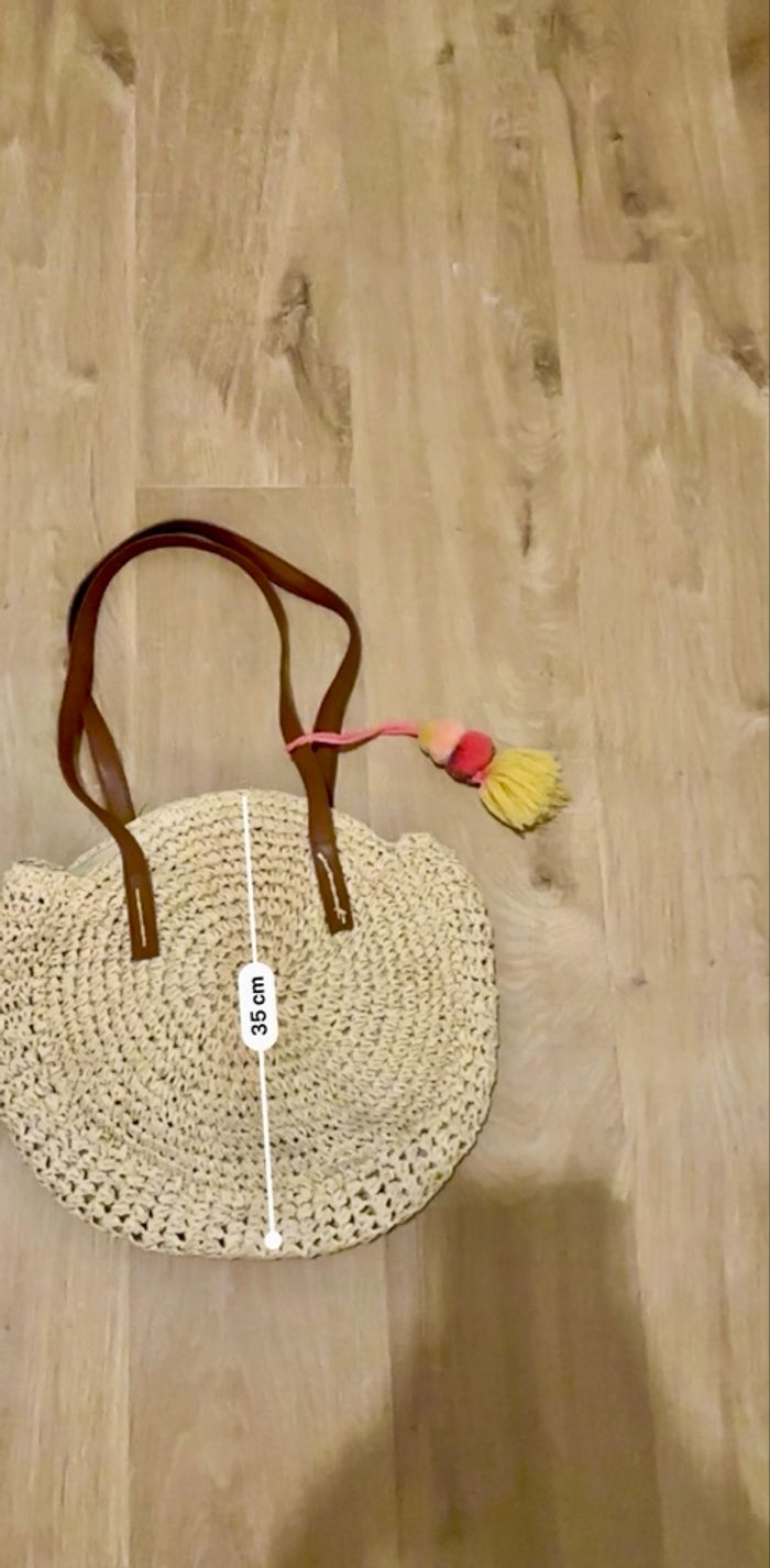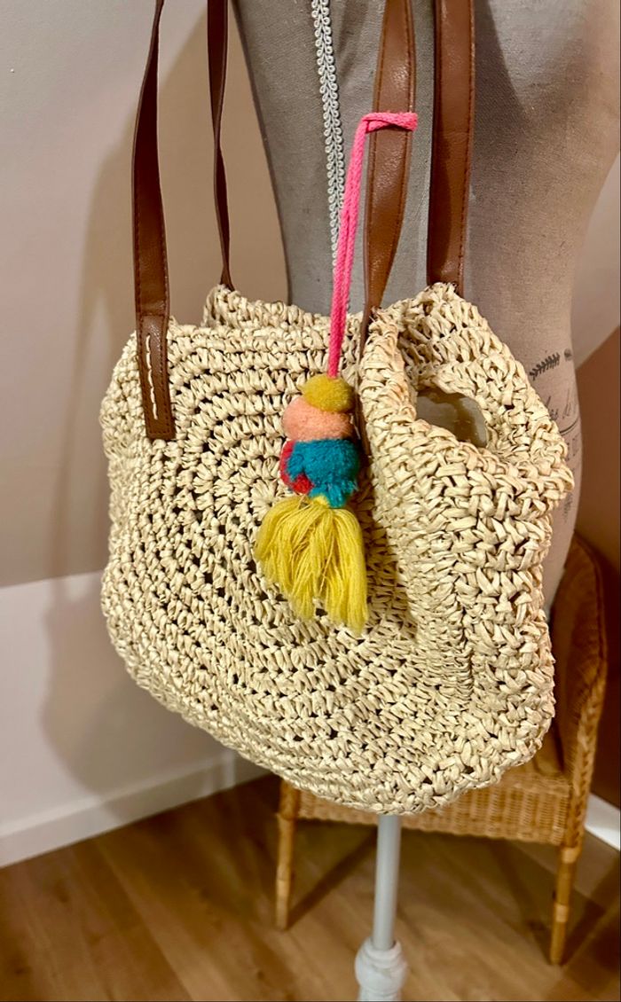 💜 Sac rond bandoulière en rafia avec pompons Gémo neuf 💜 - photo numéro 7