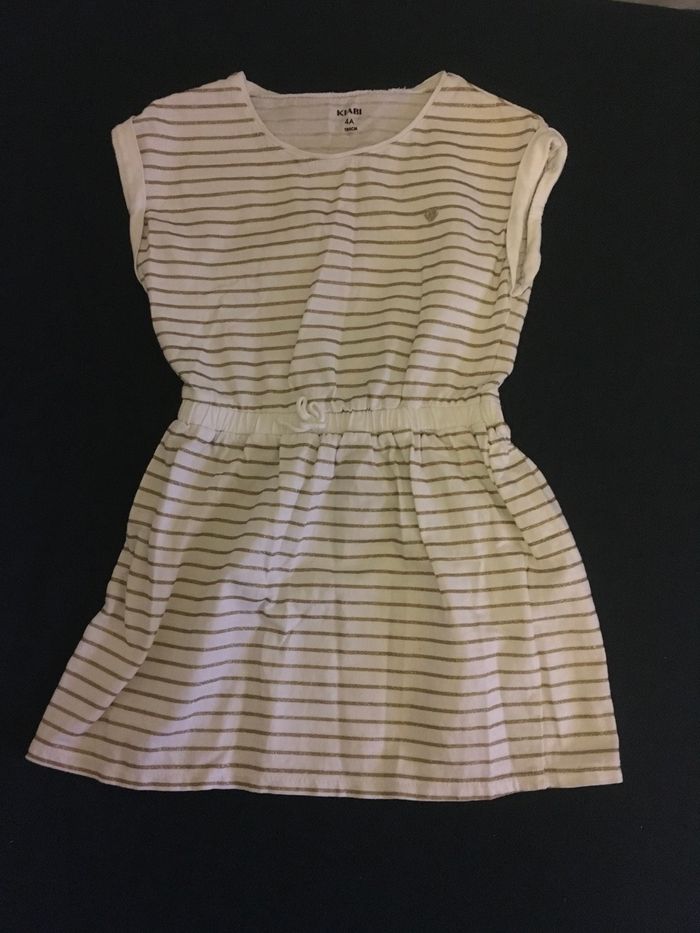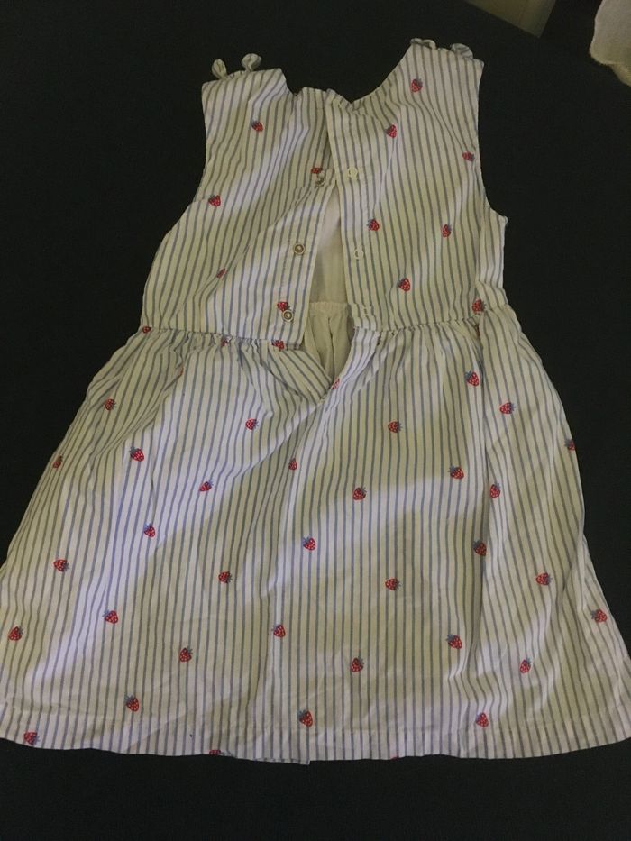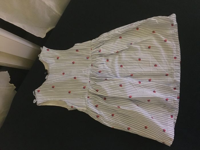 Lot 2 ribes 100% coton Robe rayures bleues avec fraises doublée et fermeture arrière par pression Robe rayures beiges coulissée taille