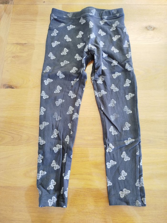 Jegging noir à motif papillons argentés. Taille élastique.
