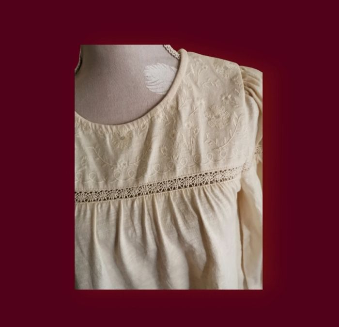 Blouse beige brodée kiabi taille 10 ans - photo numéro 3