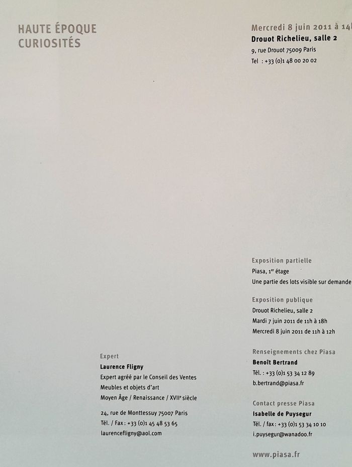 Piasa haute époque curiosités 8 juin 2011 Drouot Richelieu - photo numéro 3