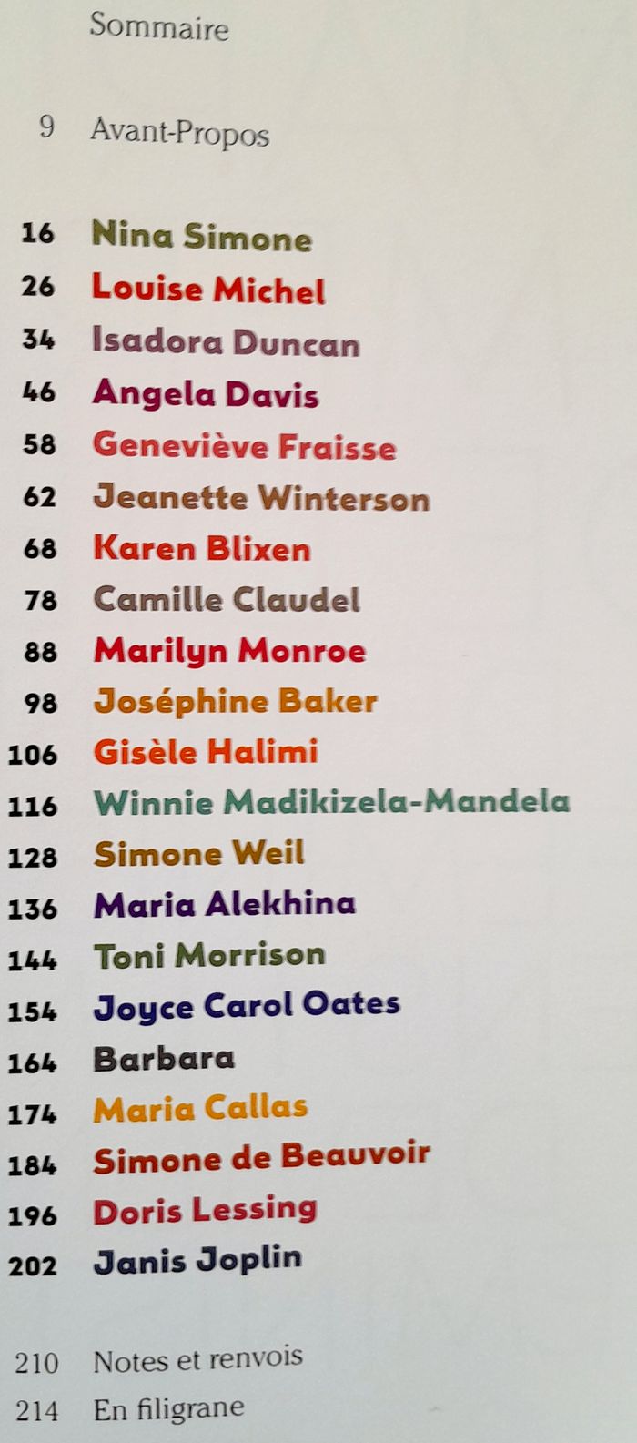 Joséphine Baker, Marilyn Monroe, Simone de beauvoir, Camille Claudel, Nina Simone, Simone Weil, Barbara, Maria Callas... 215 pages 28x22cm