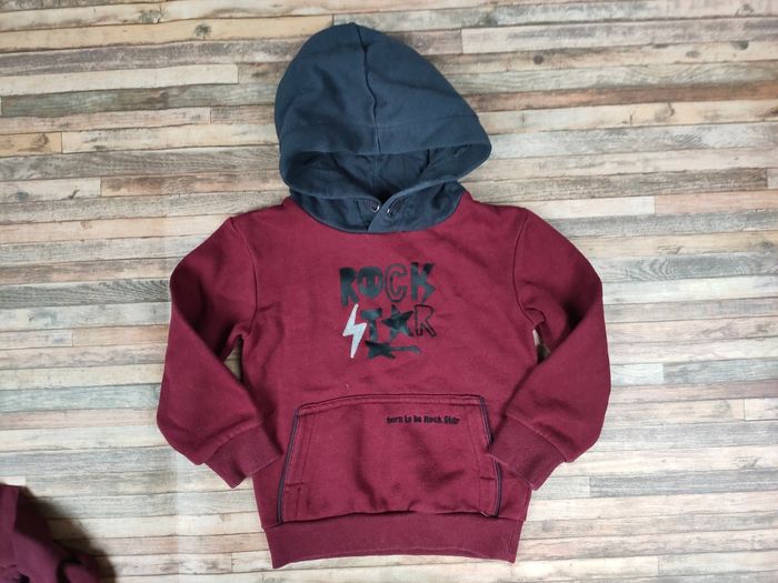 👉 Sweat à capuche Liberto intérieur molletonné chaud. Petit 5 ans. Coloris bordeaux