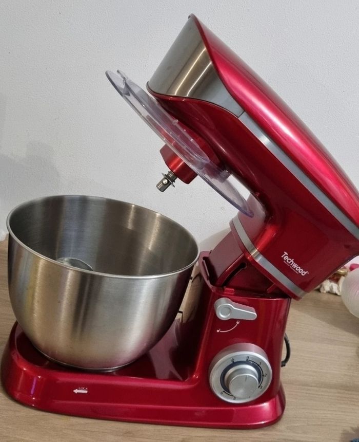 Robot pâtissier multifonction de capacité 6.5L élégant, de la marque Techwood. Caractéristiques : - Puissance : 1300W – Capacité : 6.5L (bol en acier inoxydable) – Vitesses : 6 – Fonction pétrin – Mouvement planétaire – Protection contre les surcharges du moteur – Bras inclinable avec bouton de verrouillage – Interrupteur de sécurité – Pieds antidérapants – Inclus : Couvercle transparent avec ouverture+manuel d utilisation – Accessoires en acier inoxydable : fouet, batteur plat, crochet pétrisseur