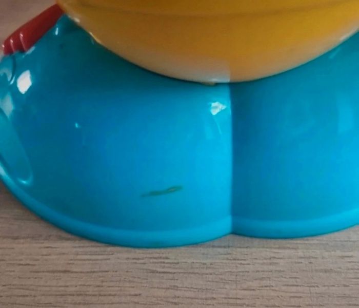 Petite marque/éraflure discrète sur la base bleue (voir photo)