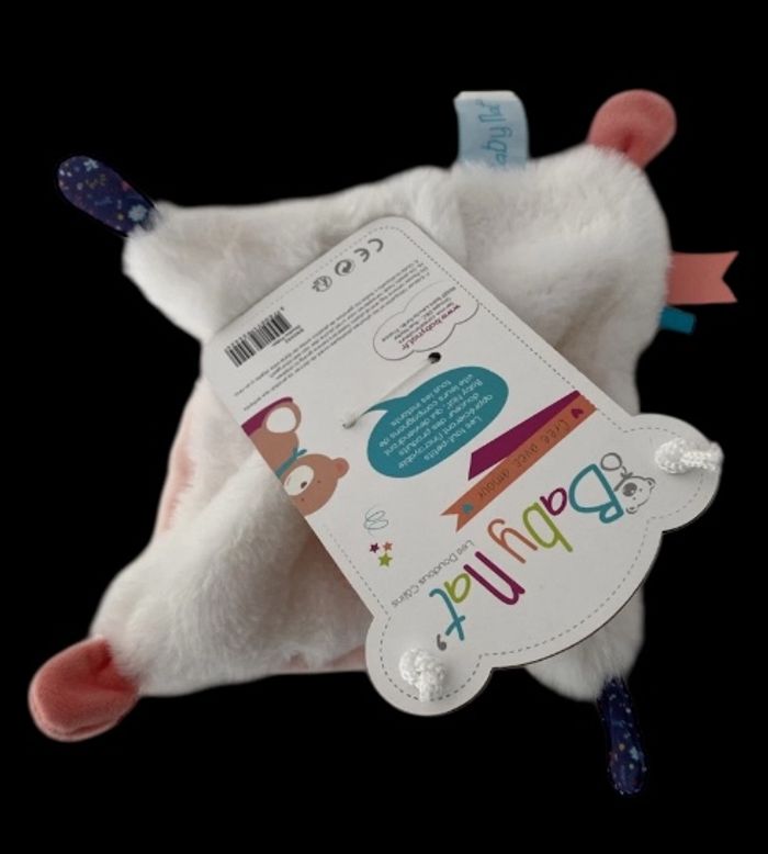 ❤️ B6441 Doudou Plat Mouchoir Chat Pollen  BABY NAT Babynat Rose Blanc - photo numéro 2