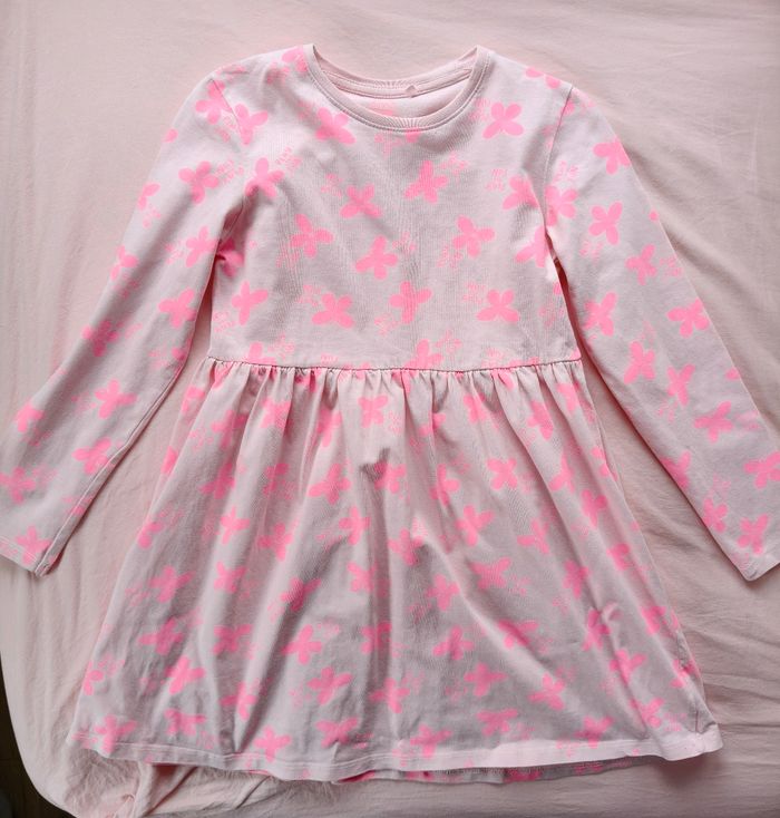 Robe manches longues fille Cool Club rose papillons 122 cm