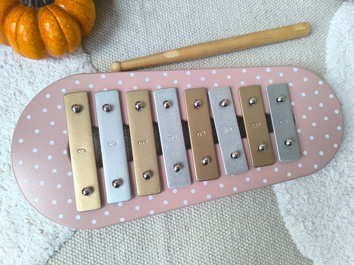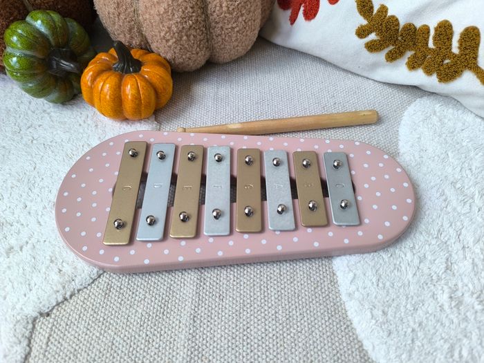 Xylophone JABADABADO comme neuf, jamais utilisé, sans emballage d’origine. Couleurs rose à pois argent et doré, parfait pour initier les enfants à la musique tout en s’amusant. Idéal comme cadeau ou pour éveiller la créativité musicale des tout-petits !