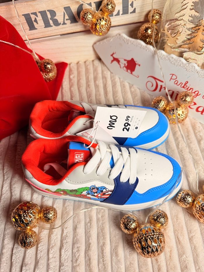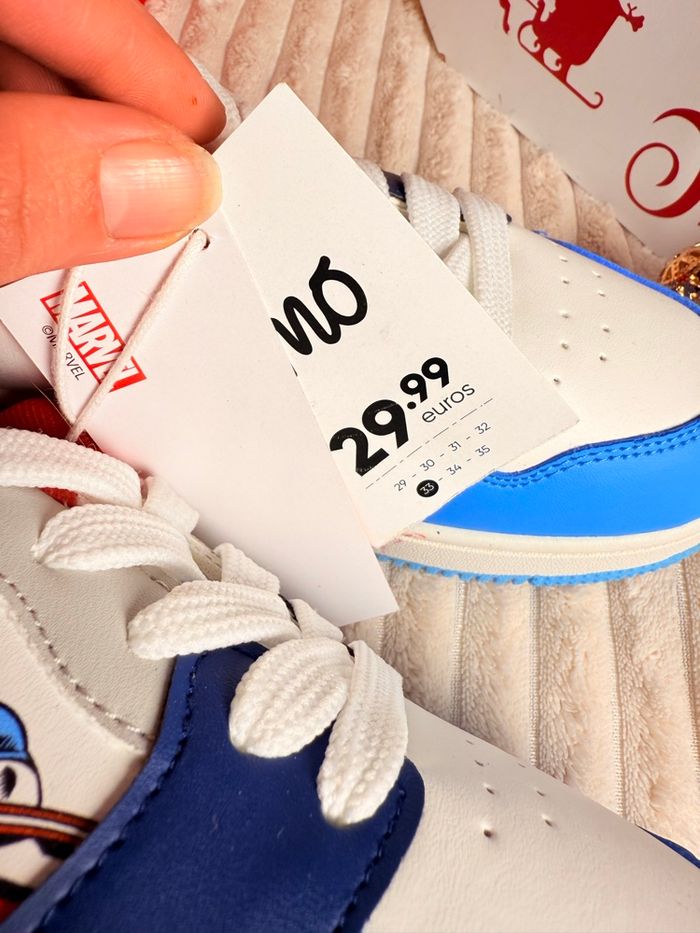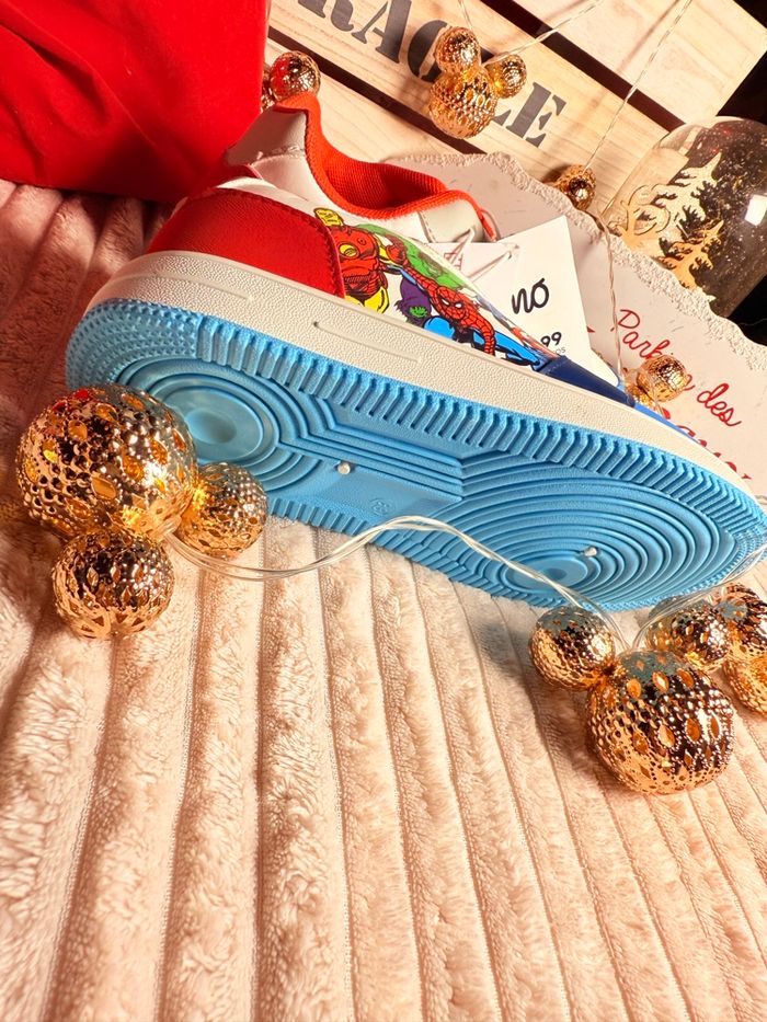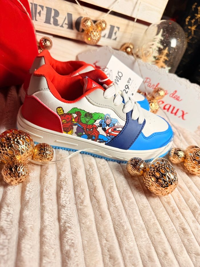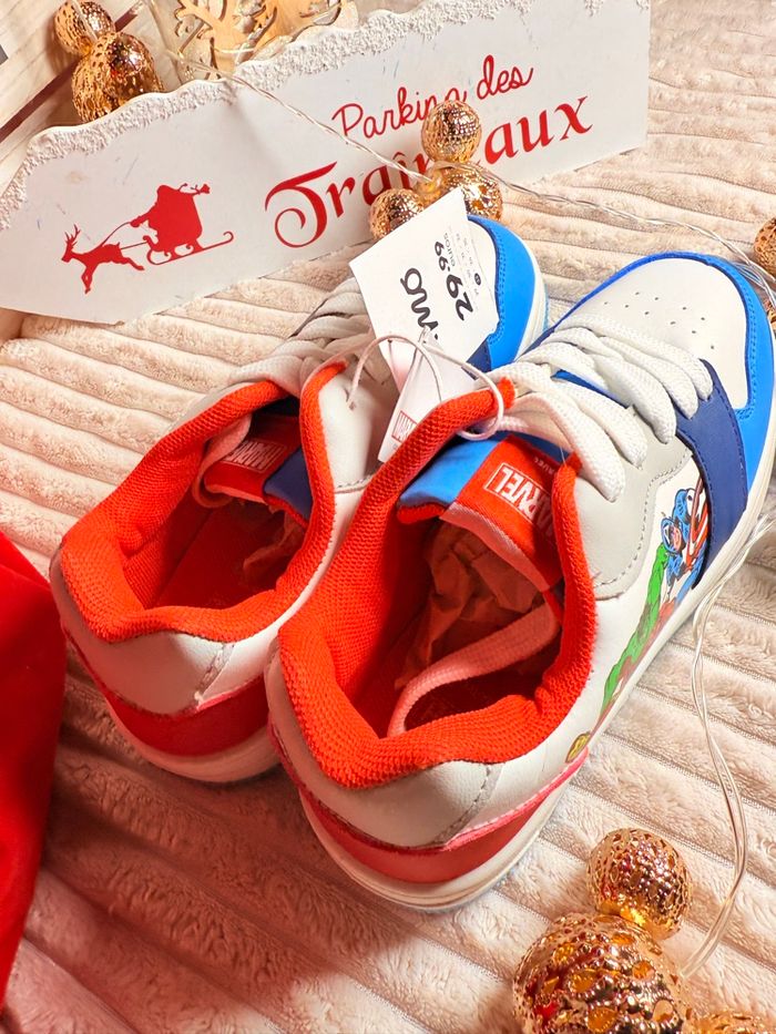 Baskets MARVEL Neuves - Idée Cadeau Noël petit prix • Marque: MO (Originale) • Taille : 33 • État : Neuf avec étiquette • Prix : 29,99 € (Prix d'achat initial) Superbes baskets MARVEL neuves pour enfant. Le cadeau parfait sous le sapin de Noël ! Spider-Man, Captain America, Hulk et Iron Man sont présents sur les côtés. Vendues avec étiquette de la marque MO. Profitez-en pour les fêtes ! Envoi rapide