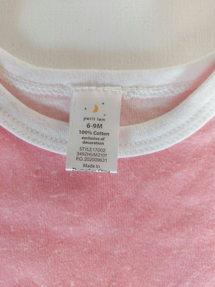 Body bébé Petit Lem Taille 6-9 mois Neuf mais un petit trou à cause de l'antivol (voir photo) d'où le petit prix