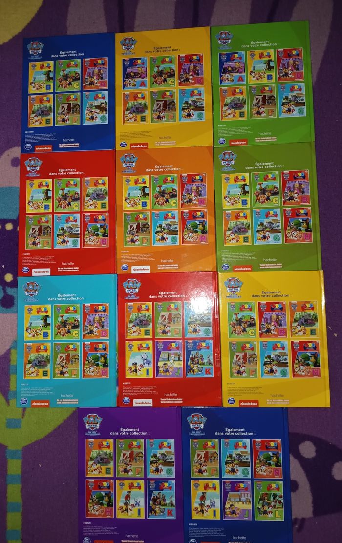 Lot livres abécédaire pat patrouille du A au K en bon état général, ils non jamais été lu ou utiliser seulement mon fils a dû en prendre un et l'a abîmé sur le côté de la couverture celui de la lettre ( H ) et , quelques petites marque peu voyante sur certains livres du derrière rien de méchant