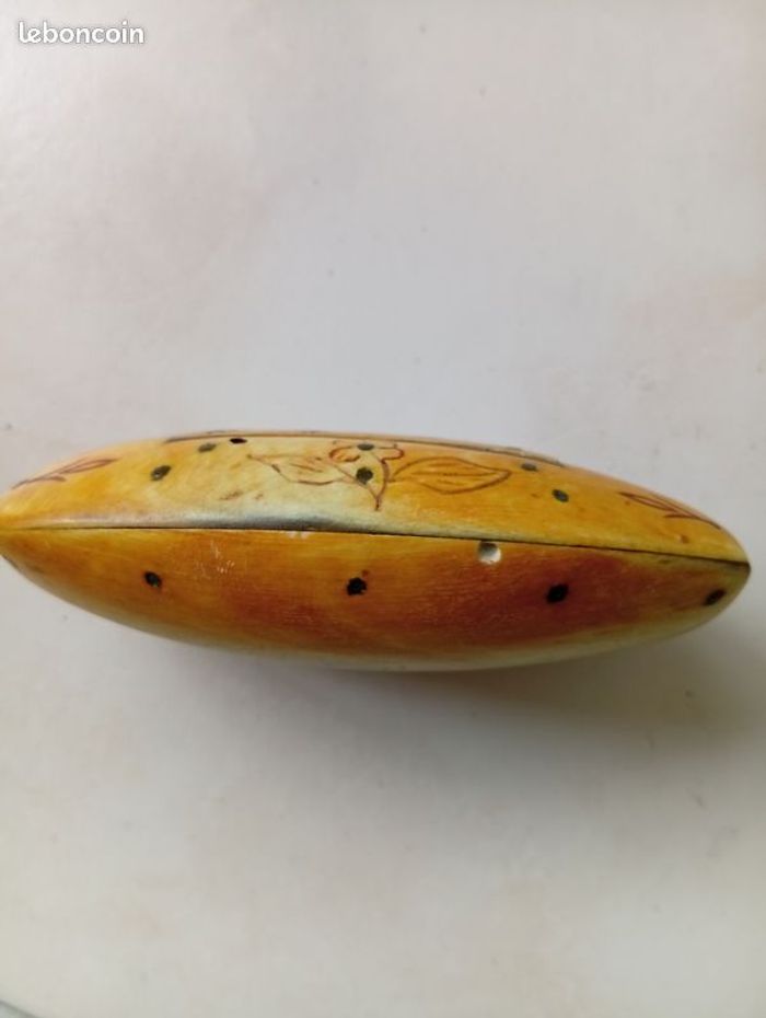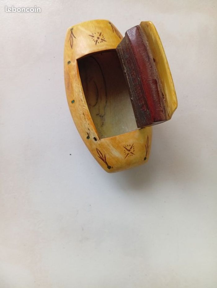 Vends une tabatière en os ou en corne couleur beige et gravée avec des ramages. Intérieur impeccable car n'a jamais servi pour du tabac. Dimensions : 10 cm de long, 6 cm de large et 3 cm de hauteur.
