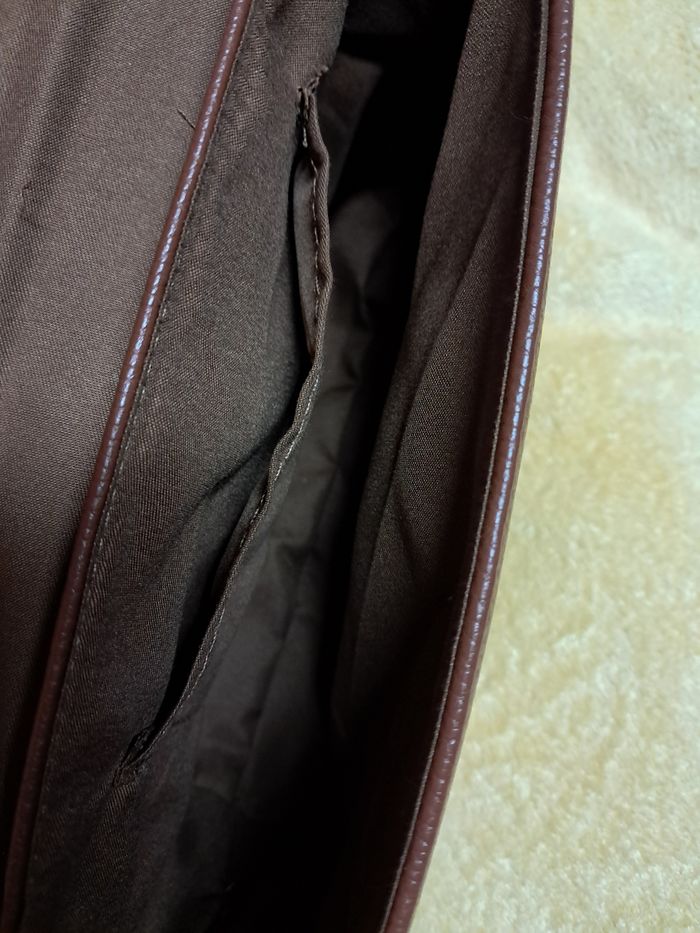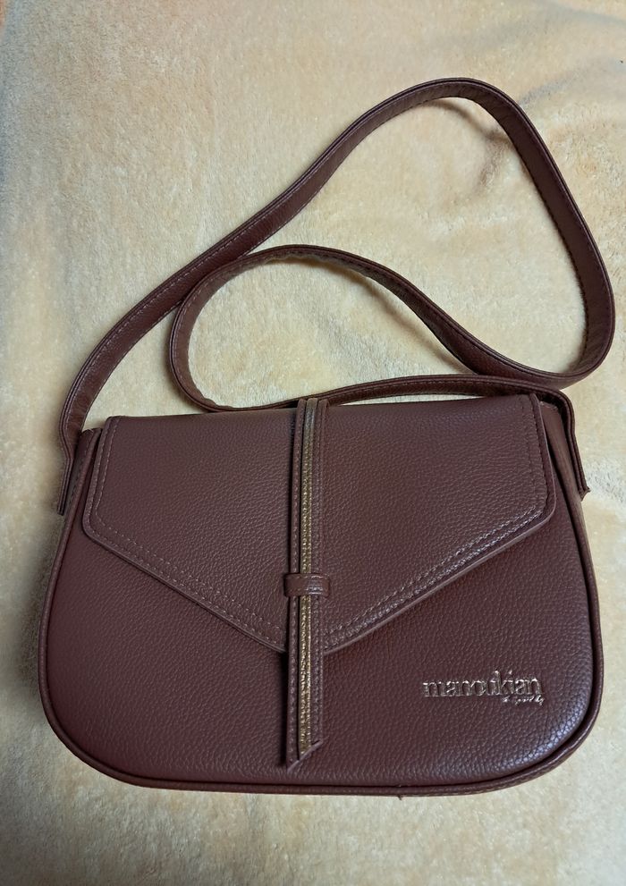 Sac à main Manoukian marron Fermeture par bouton aimanté Petite poche à l'intérieur Hauteur 19 cms Largeur 25 cms Étiquette coupée Réductions lots activées