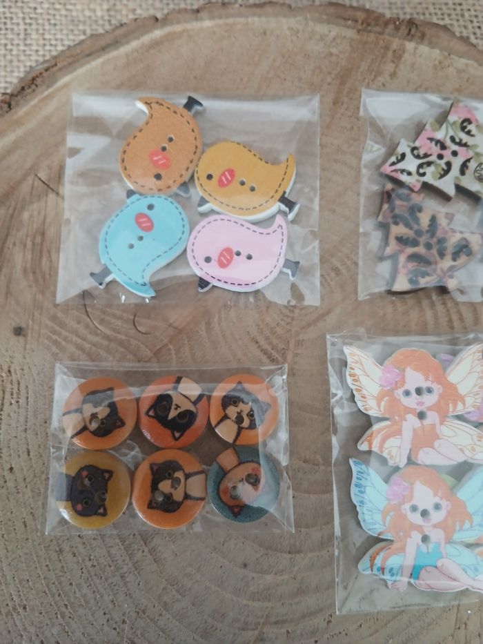 Lot de 4 sachets de boutons en bois D'autres breloques perles pompons boutons biais tissu ect de dispo ds mon dressing n'hésitez pas à jeter un coup d'œil ou à me demander