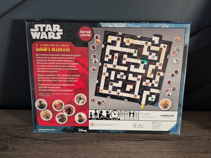 Qui s'orientera le mieux dans l'immensité de la galaxie et découvrira les chemins menant aux héros et méchants de Star Wars le Réveil de e Force ? Celui qui fera coulisser habilement les plaques du labyrinthe galactique pour transformer les impas en pages.Vous pourrez ainsi créer de nouveaux chemins et atteindre les personnages recherchés. Rejoignez ainsi R2-D2, C-3PO, Chewbacca, les soldats impériaux et de noreux autres personnages de Star Réveil de la Force. Le célèbre labyrinthe en mouvement. Des règles simples, et des parties toujours palpitantes. Contenu de la boîte : 1 plateau de jeu, 34 plaques couloir, 20 jetons, 4 pions personnage.
