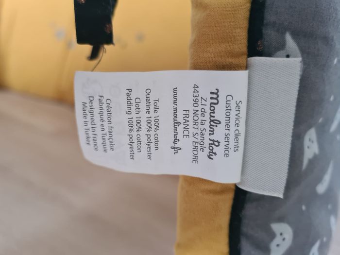 Le tour de lit Moulin Roty s'installe facilement grâce à des liens en tissu.