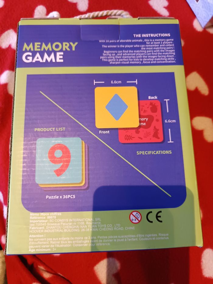 Neuf jamais ouvert jeu de mémoire chiffres,36 pièces 3 ans et +